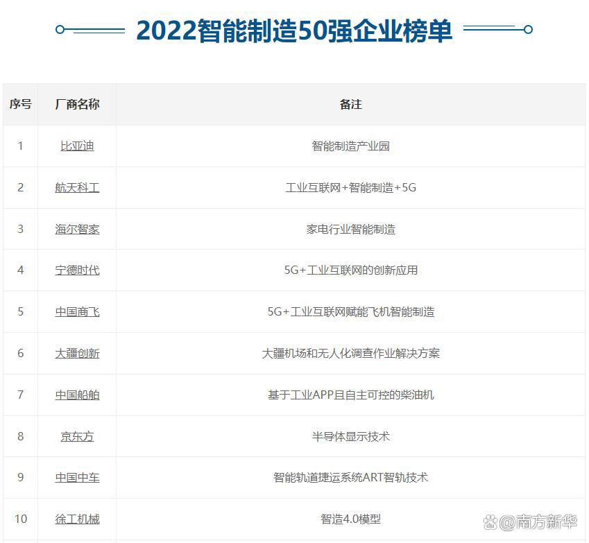 经专业评测的2022年智能制造十大品牌居前十的有:比亚迪、航天科工、海尔智家、宁德时代、中国商飞、大疆创新、中国船舶、京东方、中国中车、徐工机械等,上榜智能制造企业十大品牌榜单和著名智能制造企业品牌名单的是口碑好或知名度高、有实力的品牌,排名不分先后,仅供借鉴参考!