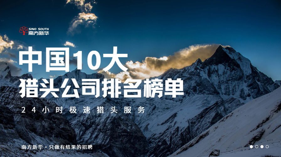 中国10大猎头公司南方新华(SINO SOUTH)中国知名猎头品牌,是全国领先的大型管理咨询式猎头服务品牌,以招聘结果为导向,为客户提供专业精准的24小时极速猎头服务和企业人力资源管理咨询服务。